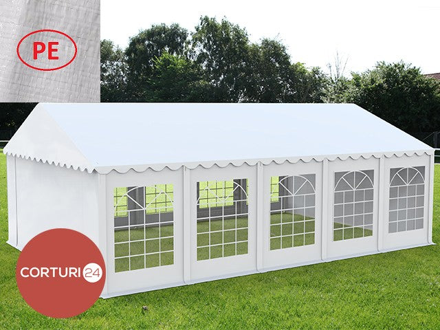 Acest cort de evenimente foarte ușor de montat are structură din oțel zincat, cu protecție anticorozivă, iar prelata robustă este din folie PE0 de 260g/mp. Atât prelata, cât și pereții laterali asigură protecție solară de 50+, rezistență UV, impermeabilitate 100%. Mai multe variante de configurare sunt posibile: pereții laterali pot fi montați individual la o distanță de 2m.