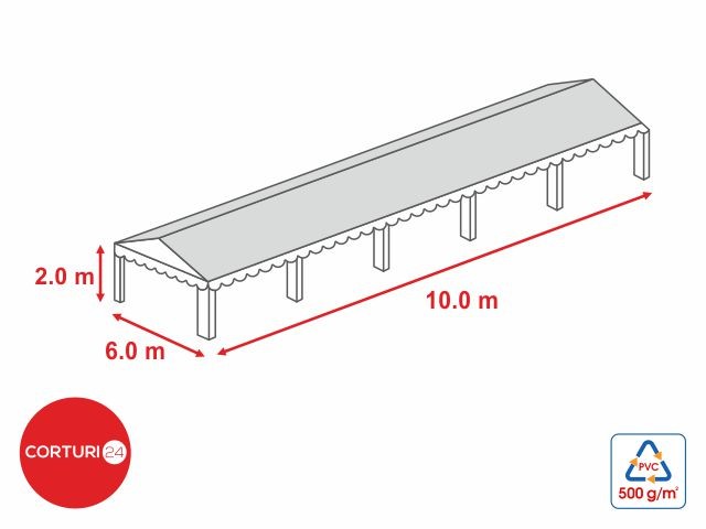 Compatibilă cu toate tipurile de corturi (Economy, Premium, Professional) cu o înălțime laterală de 2m.