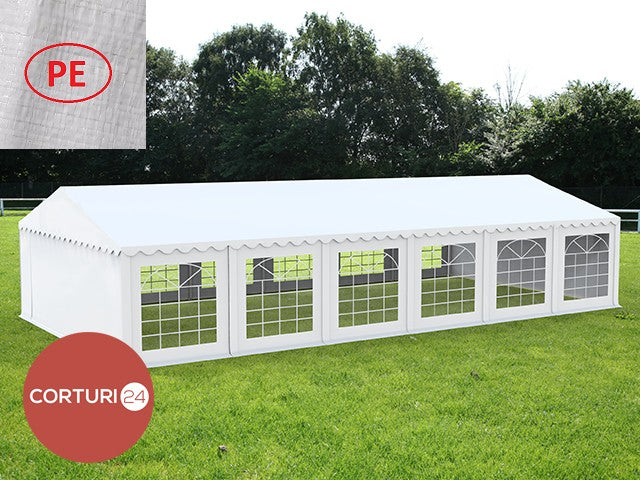 Acest cort de evenimente foarte ușor de montat are structură din oțel zincat, cu protecție anticorozivă, iar prelata robustă este din folie PE de 260g/mp. Atât prelata, cât și pereții laterali asigură protecție solară de 50+, rezistență UV, impermeabilitate 100%. Mai multe variante de configurare sunt posibile: pereții laterali pot fi montați individual la o distanță de 2m.