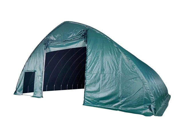 CORTURI HALE SEMIROTUNDE in verde 620g/m² PVC IGNIFUG Posibilitati de utilizareCrearea de spatii pentru depozitare si lucru.Depozitarea in siguranta a produselor si materialelor industriale sensibile la apa.Protectia la parcarea vehiculelor mari, cum ar fi : camioane, camionete, autorulote, rulote, microbuse, yahturi, barci, etc.Adapost pentru animale sau pentru hrana acestora, hambar pentru grane, fan, lemn, in agricultura sau silvicultura.Atelier sau spatiu de productie.Acoperire rezistenta la apa in zonele in constructie.Spatiu expozitional sau comercial, rezistent la vant, ploaie si zapada, intemperii.Adecvate utilizarii temporare sau indelungate.Calculul staticStatistica este necesara pentru depunerea informațiilor catre autoritatile publice.Foarte stabil: calculul static pentru acest cort a fost certificat de ingineri germani.Urmatoarele incarcaturi sunt acoperite daca acest cort este montat conform manualului de calcul static.Pana la o forta a vantului de 10 BFT / furtuna.Aprox. 30 cm de zapada proaspata (aprox. 60kg/m²). Se recomanda oricum indepartarea prompta a zapezii de pe acoperisul cortului.Este inclus in pachet si un sistem de ancorae pentru stabilitate atat pentru montarea pe beton cat si pentru montarea pe pamant.PRELATAPrelatele sunt din PVC 620g/m² IGNIFUG verde, material foarte rezistent, asemanatoare prelatelor de camion.Prelata din tesatura foarte rezistenta, dublu acoperita cu PVC si 100% impermeabila – este certificata conform normelor DIN EN ISO 527.Prelata din PVC este rezistenta la foc: certificata asupra sigurantei la foc, conform DIN 4102 B1.Certificata pentru temperaturi de la -30 la +50 Celsius.Inalta rezistenta la UV si foarte buna protectie la UV.100% impermeabila la apa.Corturi profesionale de tip semirotund, pentru depozitare sau in scop industrial cu garantie si factura. Structura robusta din otel zincat cu tevi de 50 mm cu 1,3 mm grosime. Prelata 100% impermeabilă din PVC 620 g/mp.MontajulInstructiunile de montaj detaliate, etichetarea fiecarei componente, permite asamblarea si montajul foarte rapid si simplu, fara a avea cunostinte anterioare in domeniu.Nu necesita fundatie.Nu necesita proiect de autorizare, in majoritatea situatiilor.Uneltele necesare sunt cele standard.DimensiuniLatime: 8 mLungime: 8 mSuprafata: 64 m²Inaltimea la varf: 4 mInaltimea usii: 3 mLatimea usii : 3,39 mDistanta intre arcele verticale: 1 mȚevi din otel zincat:Diametrul 50mmGrosime 1,3mmPrelata rezistenta si sigura la foc: Ati achizitionat un cort cu prelata dublu acoperita cu PVC, rezistenta si sigura la foc, material certifica conform normelor:GB - BS 5438:1989 2BF – M1/M2D – DIN 4102 – B1/B2PL – EN 13501-1NL, B, L – EN 13501-1DK, S, N – SIS 650082A – EN 13501-1CH – BKZ 5.2ES - EN13501-1I - EN13501-1Livrarea produsului se face din depozitul firmei noastre din CARTISOARA / Fagaras.