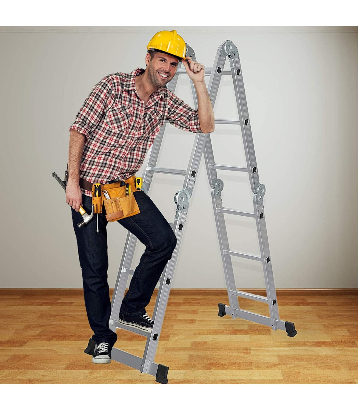 Daca nu ati decis sa cumparati o scara, deoarece nu aveti destul spatiu de depozitare în casa dvs, atunci aveti nevoie de o scara multifuncționala articulata. Scara multifunctionala articulata poate fi transportata in masini mici fara a fi nevoie sa o fixati pe acoperișul vehiculului. Scara este realizata din profil de aluminiu stabil și trepte de profil anti-alunecare patrate sigure, care suporta pana la 150 kg.